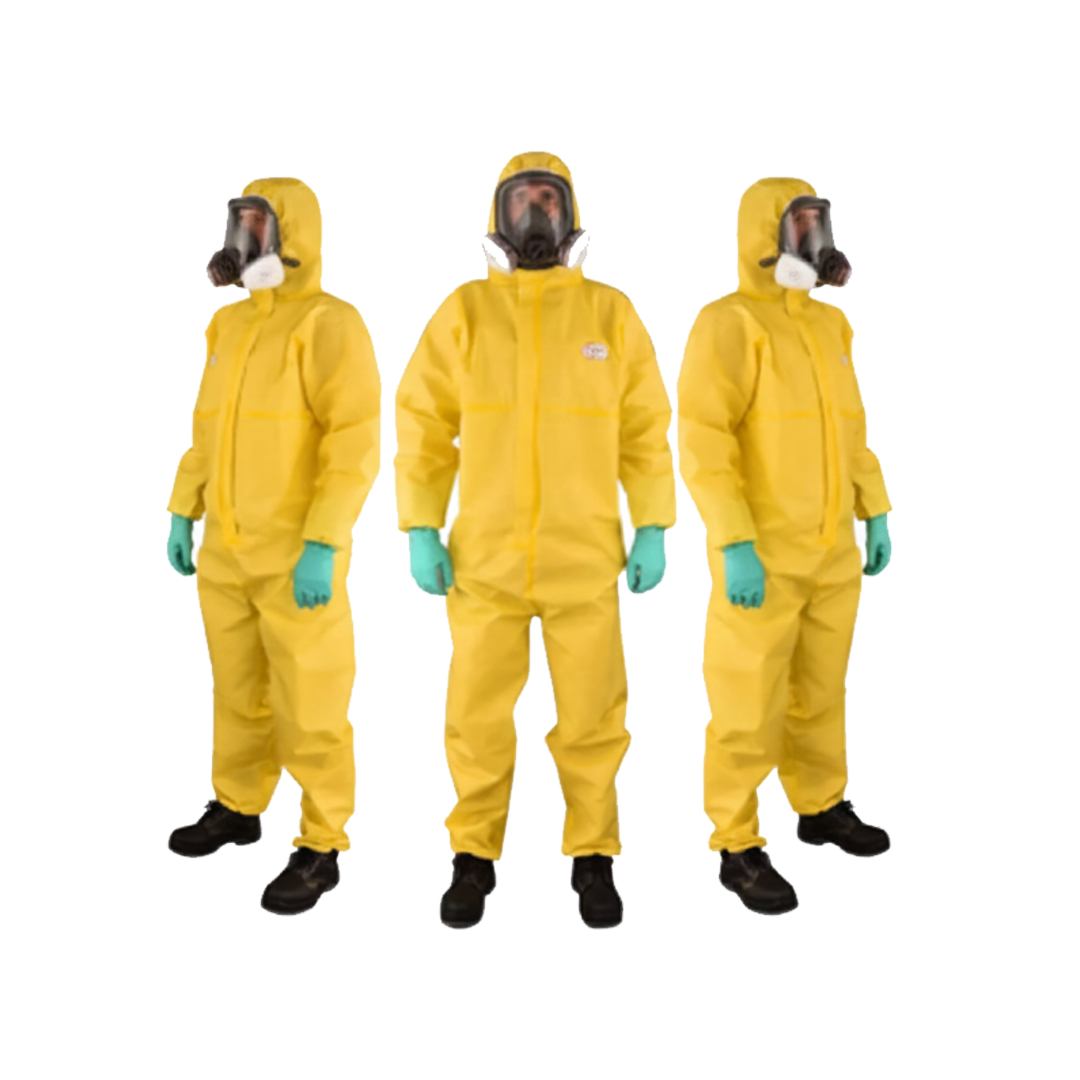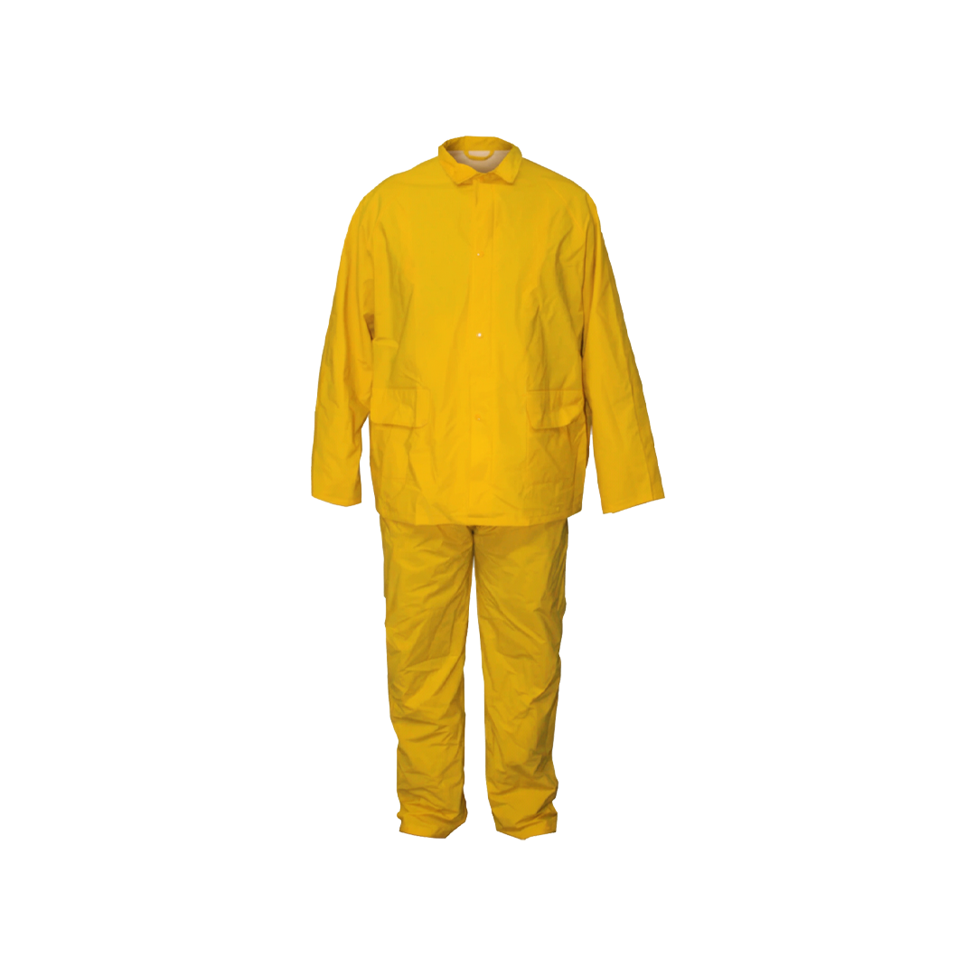 بدلة حماية كاملة مصنوعة من مادة PVC (بوليفينيل كلوريد) عالية الجودة، مصممة لتوفير حماية قوية ضد السوائل، الرذاذ الكيميائي، الطلاء، والغبار أثناء العمل في بيئات خطرة.